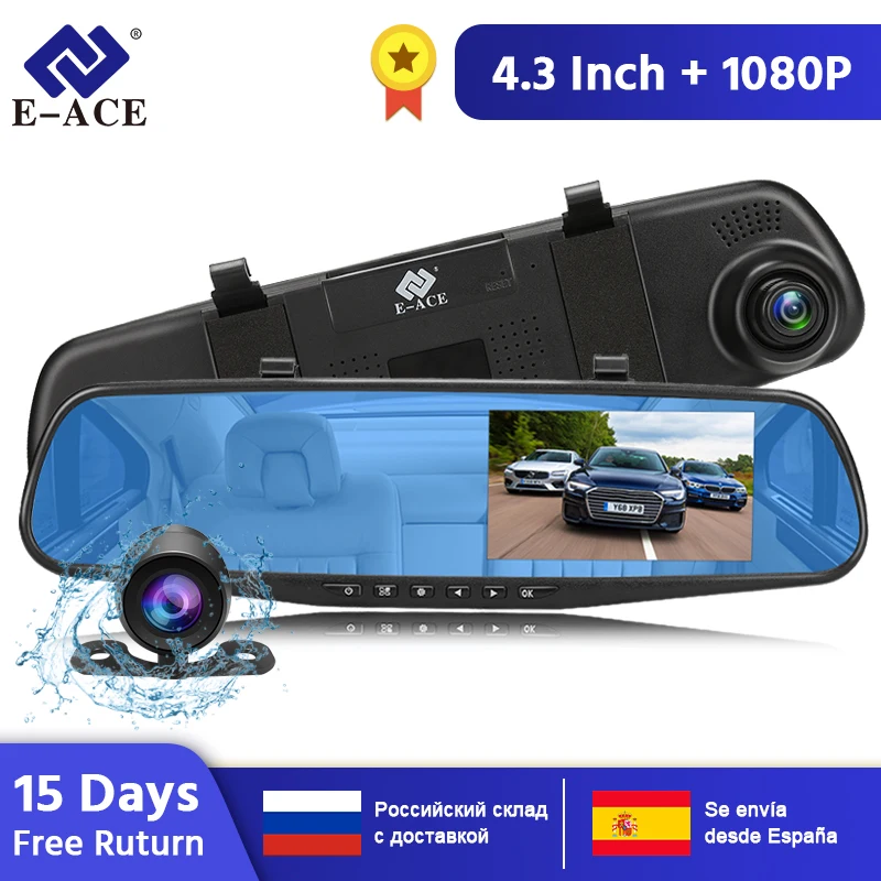 Special Offer E ACE Автомобильный видеорегистратор 1080 P с двумя объективами камеры черточки рекордер с камерой заднего вида и видеомагнитофоны синий видео... Discount 37% Today!